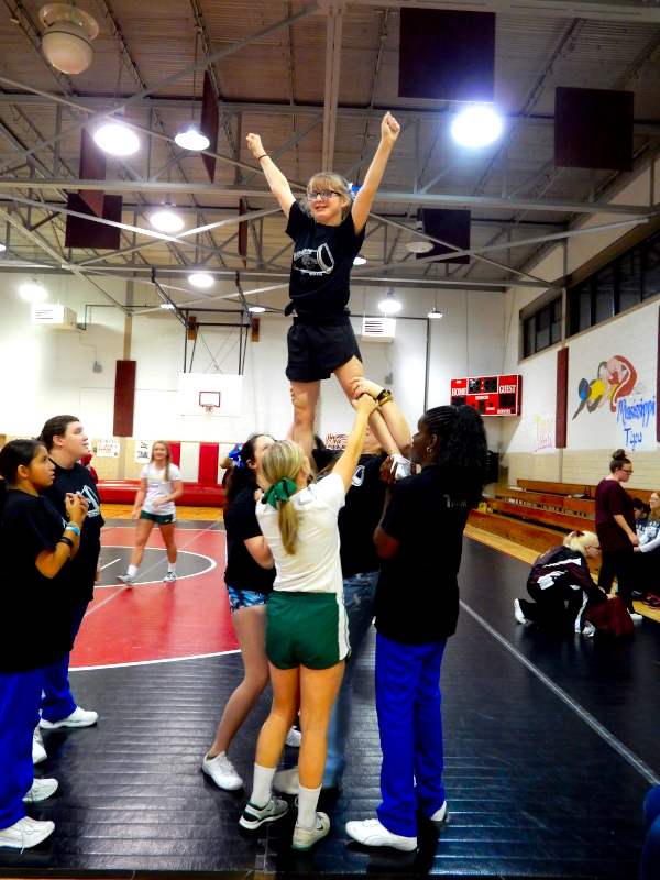 Cheerleading is for 7-12th grade students. The team consists of any student who wants to try cheerleading. Out of the students interested in Cheerleading, a competitive team is chosen. The competition team can have up to 6 members who are willing to work hard and learn.