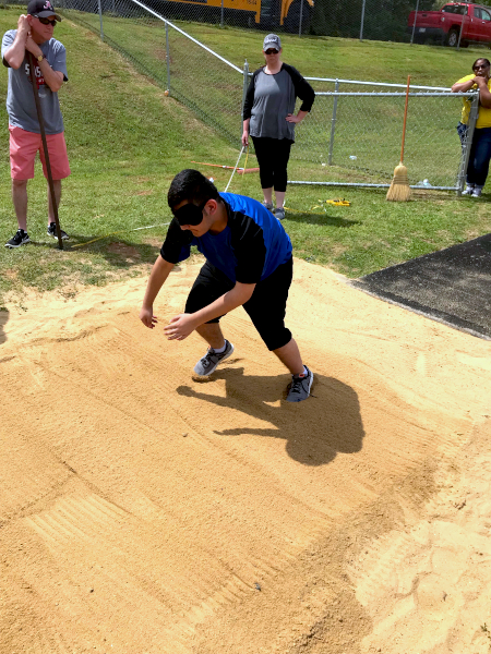 • Those who have the most vision loss must wear a blindfold while approaching the event, while participating in the event, and until released from the event. These athletes are classified as class A. Class A events are as follows: 60m, 400m, 800m dash; shot put, standing long jump, standing high jump, standing triple jump, 200m shuttle.